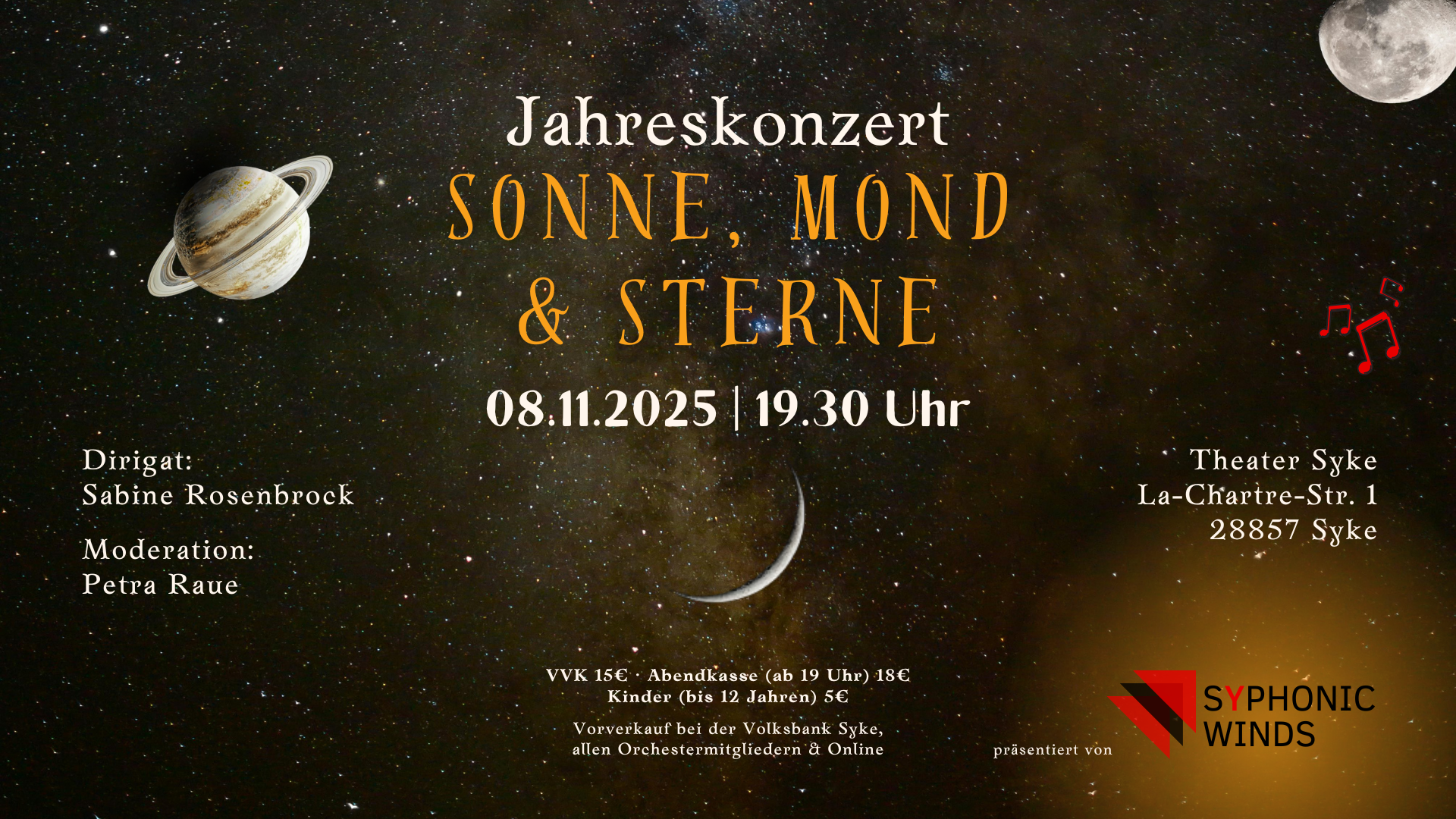 Jedes Jahr begeistern wir Euch mit unserem Jahreskonzert - dieses Jahr unter dem Motto "Sonne, Mond & Sterne"